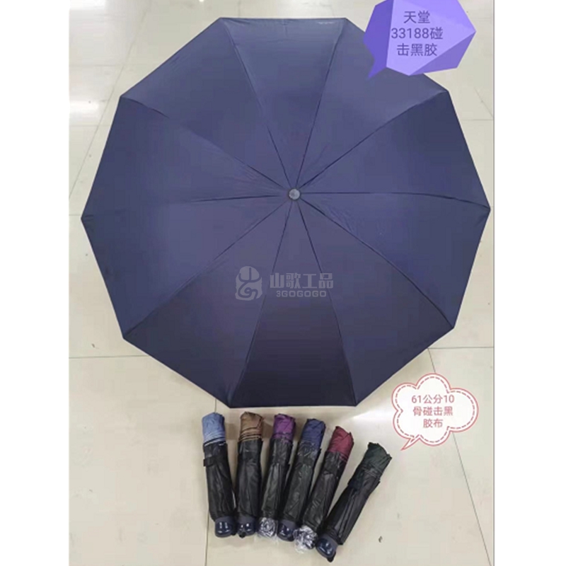 天堂 折叠伞 33188 碰击黑胶 十根骨架(定制双面单色印字)黑色