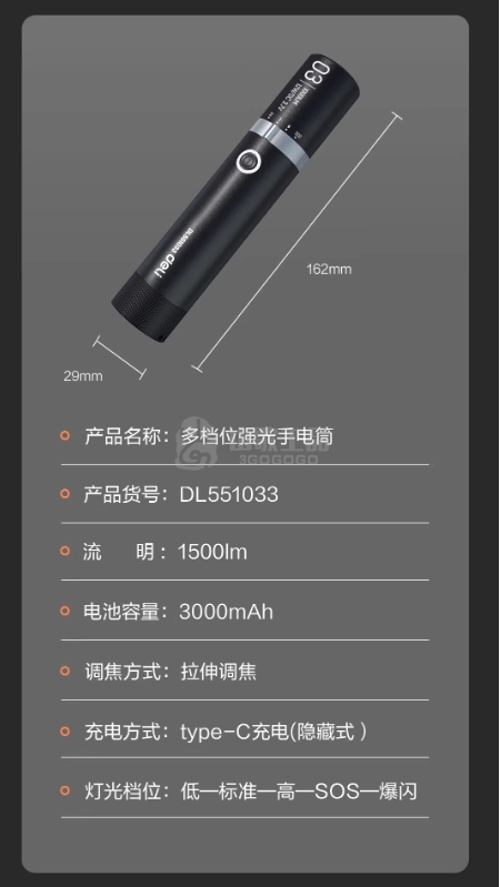得力工具 DL551033 居家强光手电筒