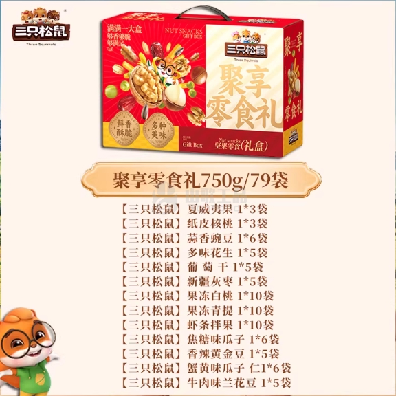 首页> 办公> 礼品、食品> 节日礼品> 三只松鼠 坚果礼盒混合干果零食炒货聚享零食礼