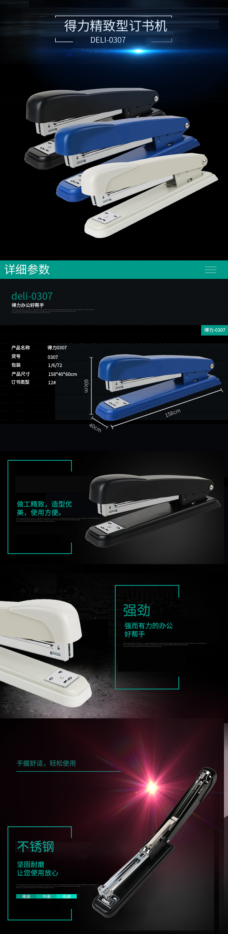 首页> 办公> 办公用品> 订书机及配件> 得力文具 0307 订书机 12#钉 精致型 厚实订书机 订书器
