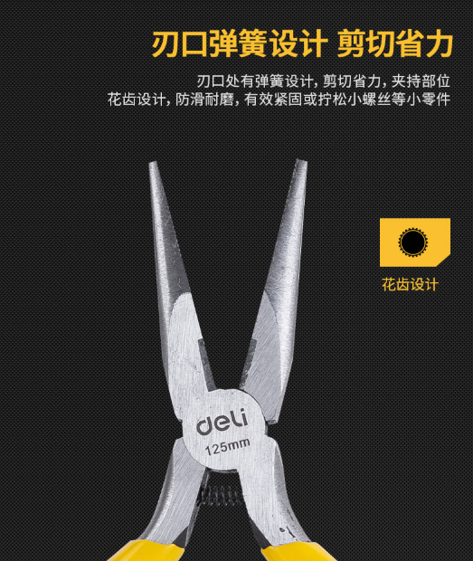 首页> 工具> > 尖嘴钳> 得力工具 迷你尖嘴钳 尖口钳 尖咀钳 多功能断线钳子5寸 DL20026