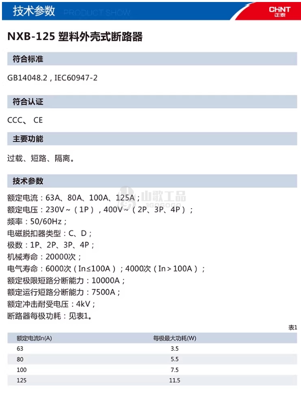 正泰 断路器 NXB-125